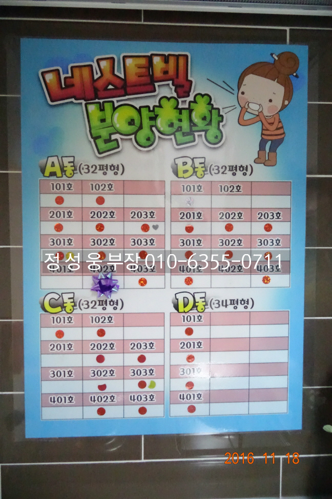 분양 현황판인데 잔여세대도 얼마 남지 않았어요.