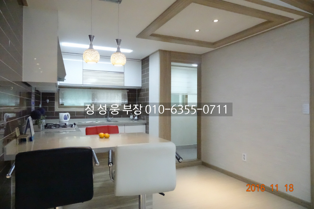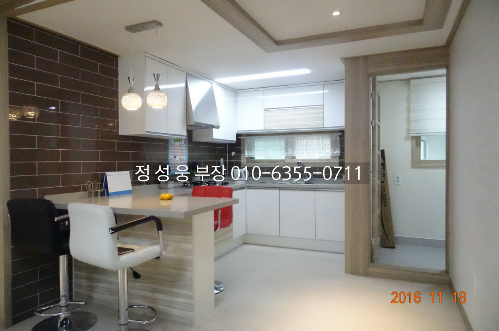 아일랜드 식탁이 설치되서 싱크대 면적도 충분하며 수납 공간도 넉넉합니다.