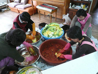 우리동네 아주머니 몇분이 방문해서 속 넣는 일을 같이 도와 주었습니다.