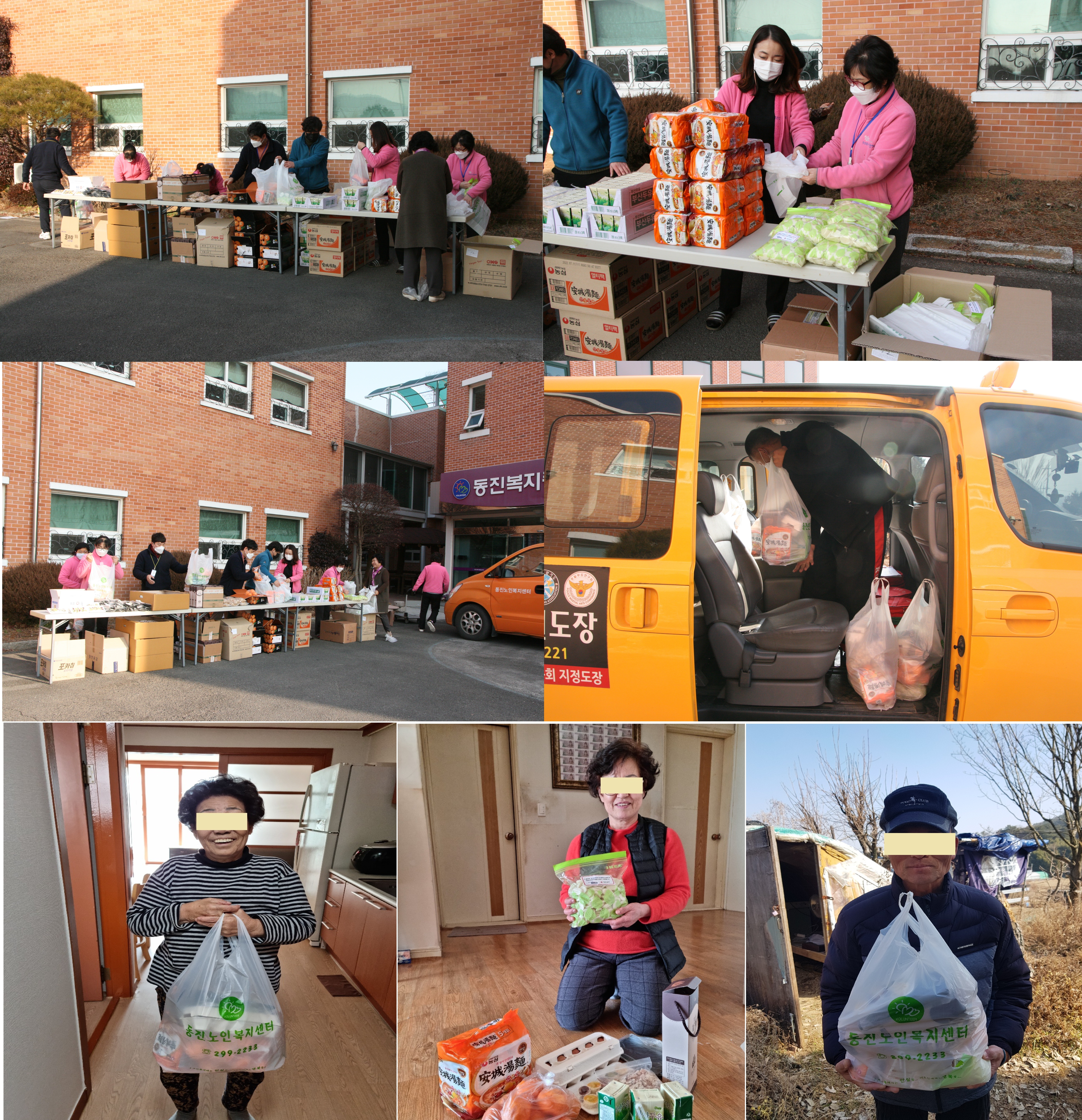 현대로템(주) 삼사랑회에서 보내주신 떡국떡으로 더욱 풍성해진 사랑의 바구니를 이른 아침부터 준비하여 어르신들을 찾아 뵙고 전달하였으며, 어르신들께서는 “코로나가 심해 못 올거라 생각하셨다” 말씀하시며 손을 꼭 잡아주시고 인사를 해주셨습니다.