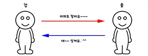 계약은 서로 대립하고 있는 의사표시의 합치에 의하여 성립하는데, 보통 청약·승낙이라고 하는 서로 대립하는 두 의사표시의 합치에 의하여 성립합니다.