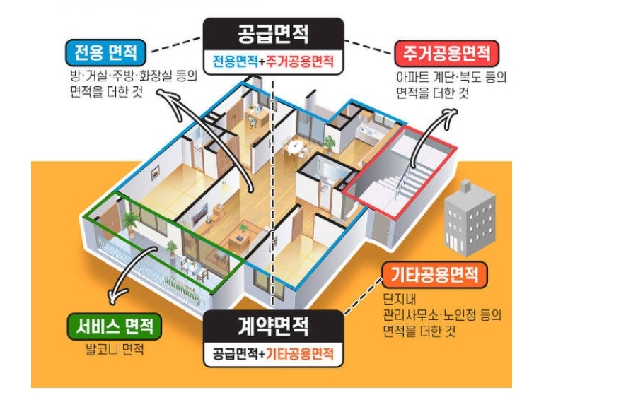 분양면적, 공급면적, 전용면적, 공용면적, 계약면적, 서비스 면적