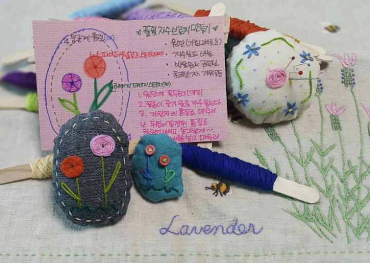 6월 16일 토요일 11시에는 '풀꽃자수 브로치'를 만들어 보는 시간도 마련되어 있어요.