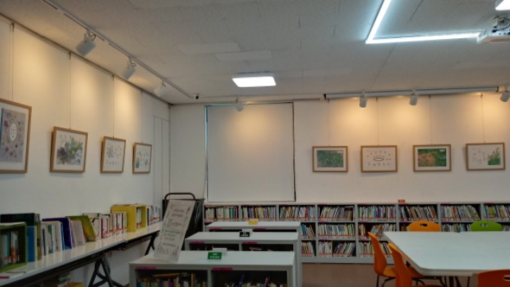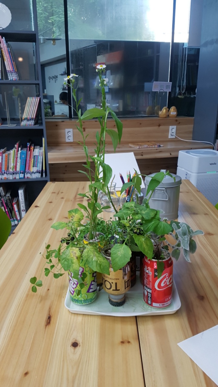 2충 서가 한쪽에선 캔화분으로 이사 와서 자리잡은 풀꽃들과 눈 맞추며 세밀화를 그려보고, 전시되어 있는 다른 이용자들의 작품을 만날 볼 수 있어요.