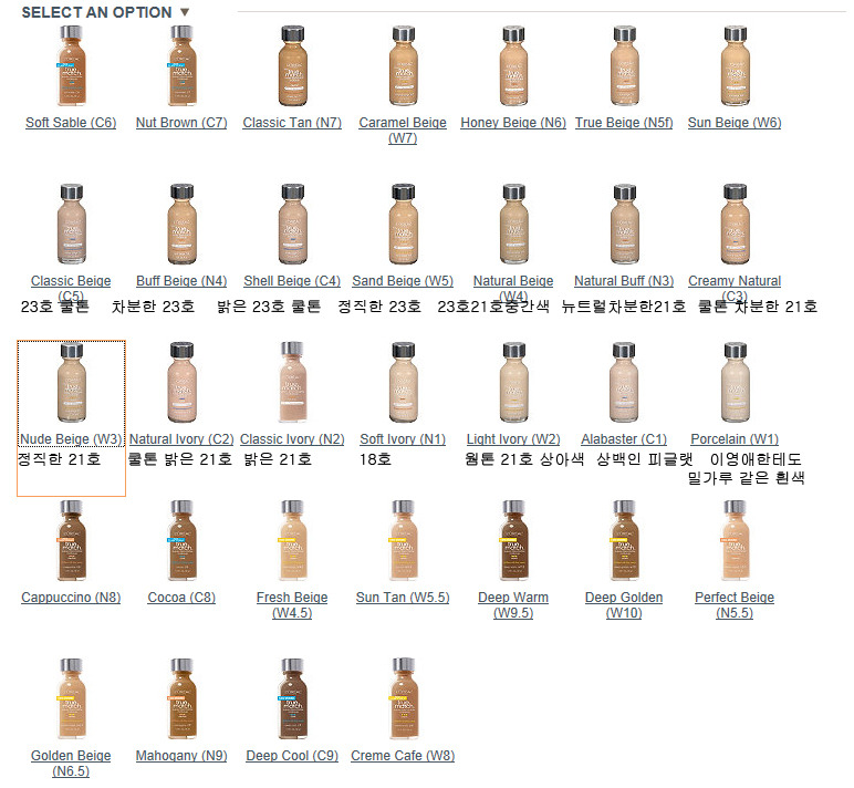 일본에서는 클래식 아이보리/ 내츄럴 아이보리/누드베이지/내츄럴 버프/내추럴 베이지/샌드베이지만 취급한다고 하니까 그 색상들이 대체로 표준적인 피부톤인거 같아요.