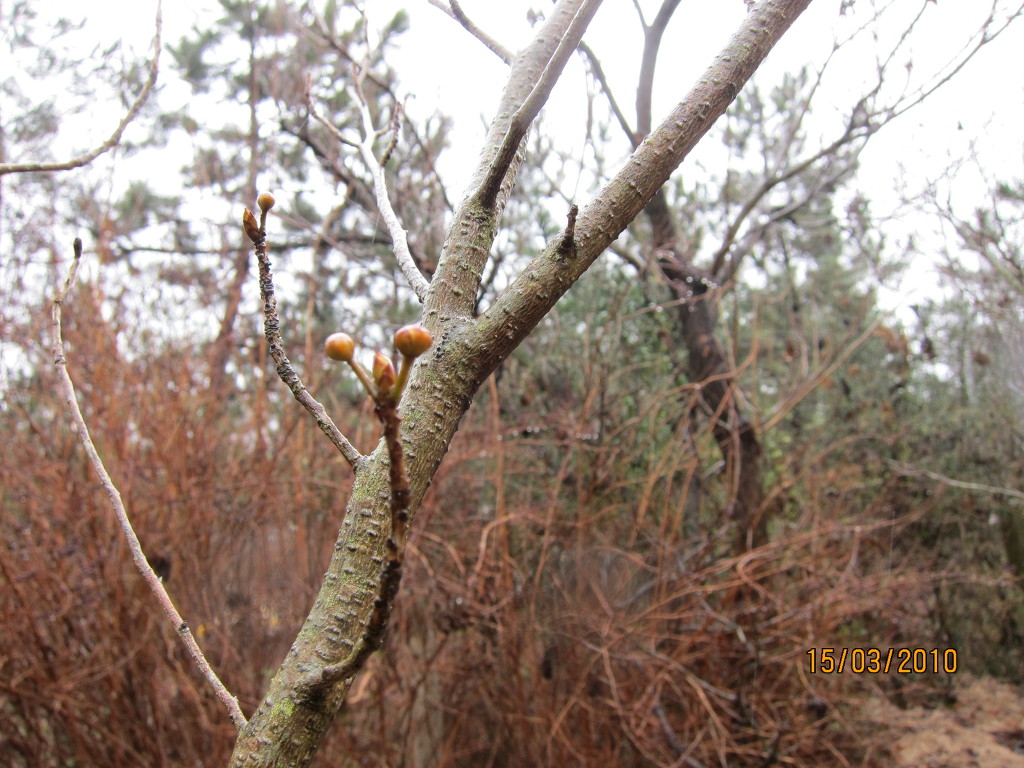 비목의 꽃눈과 잎눈 (딱총나무와 비목이 꽃눈과 잎눈이 함께 나오네요) 가운데가 잎눈.