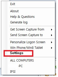 상태표시줄 아이콘에서 우클릭 > Settings 선택
