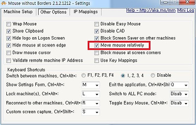 그래서 'Move mouse relatively'를 체크하면 좀 더 부드럽게 이동합니다.