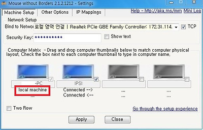 위 링크에서 다운로드 후 실행합니다. 메인 컴퓨터(사용할 키보드와 마우스가 있는 쪽)와 서브 컴퓨터에 모두 프로그램을 설치해야합니다. 무엇보다 두 컴퓨터가 반드시 동일한 네트워크에 연결되어 있어야 합니다. 집에서 해보니 무선랜과 유선랜이 공유기로 묶여있으면 상관없습니다. 학교에서도 같은 교무실 안에서는 연결되었구요. 특별히 네트워크를 따로 구성하신 분들이 아니라면 크게 신경쓰진 않으셔도 될 겁니다.