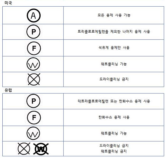 세탁표시기호 중에 P나 F, W, A 등 알파벳이 써있는 경우가 있습니다.