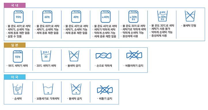 세탁표시기호 뜻 정리 (나라별 케어라벨)