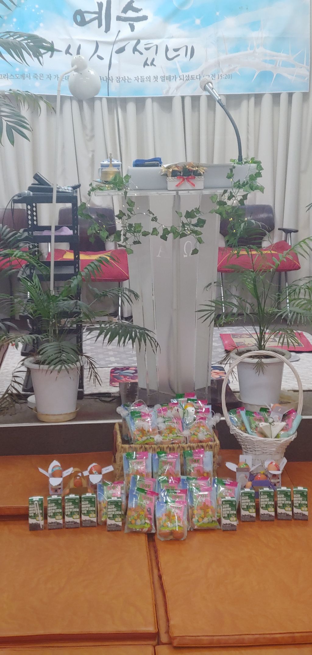 부활절 띠를 두르고 전도지랑 전도 봉투에