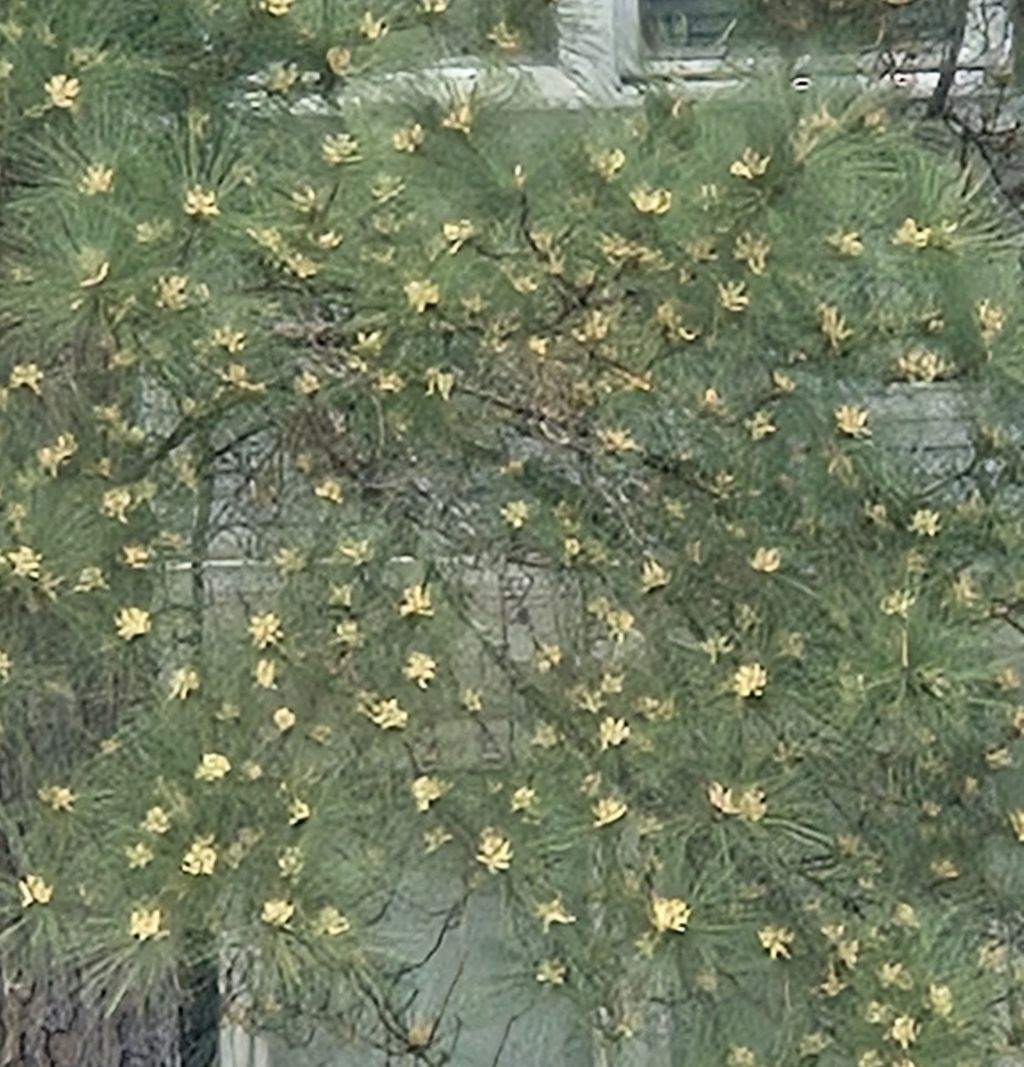 문앞에도 발걸음마다 노란가루 날려 바지밑단이 노란 송화가루 범벅일 정도네요