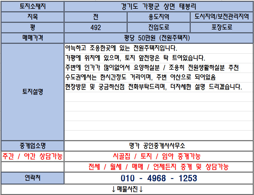 경기도 가평에 전원주택지 좋은땅 나왔습니다. 작성자명가공인|작성시간19.02.07|조회수17 목록 댓글 0 글자크기 작게가 글자크기 크게가 다음검색 현재 게시글 추가 기능 열기 북마크 공유하기 신고 센터로 신고 댓글 댓글 0 댓글쓰기 답글쓰기 댓글 리스트