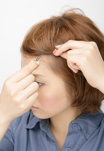 1 앞머리를 어느정도 잡아서 감아 트위스트