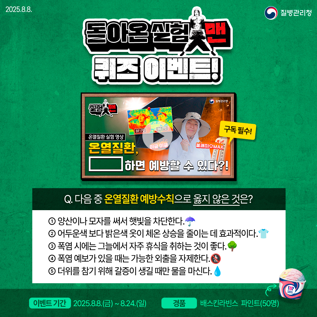 [#이벤트] 돌아온 실험맨! 여름철 건강 퀴즈