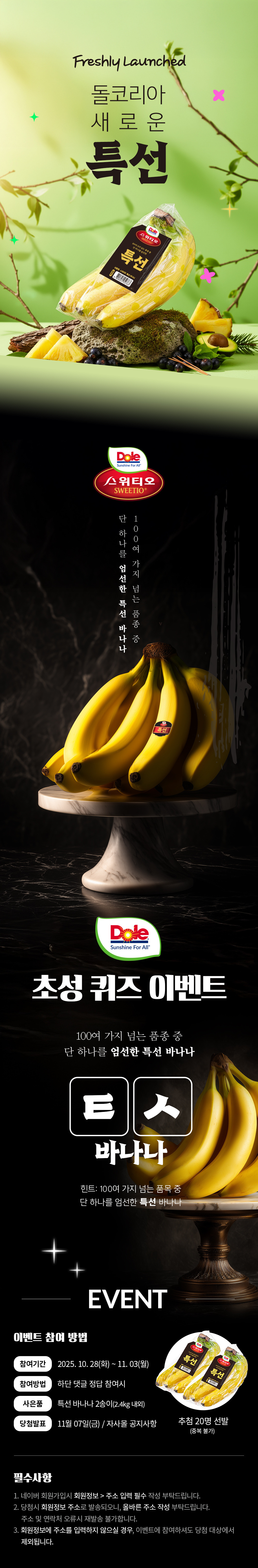 엄청 쉬운 초성 이벤트하고 바나나 받자!! 작성자213193585|작성시간25.10.28|조회수34 목록 댓글 0 글자크기 작게가 글자크기 크게가 https://www.dolemarket.co.kr/board/?db=basic_3&mari_mode=view@view&no=2329Dole Market제목 특선 바나나 초성 이벤트 조회수 16www.dolemarket.co.kr 다음검색 현재 게시글 추가 기능 열기 북마크 공유하기 신고 센터로 신고 댓글 댓글 0 댓글쓰기 답글쓰기 댓글 리스트