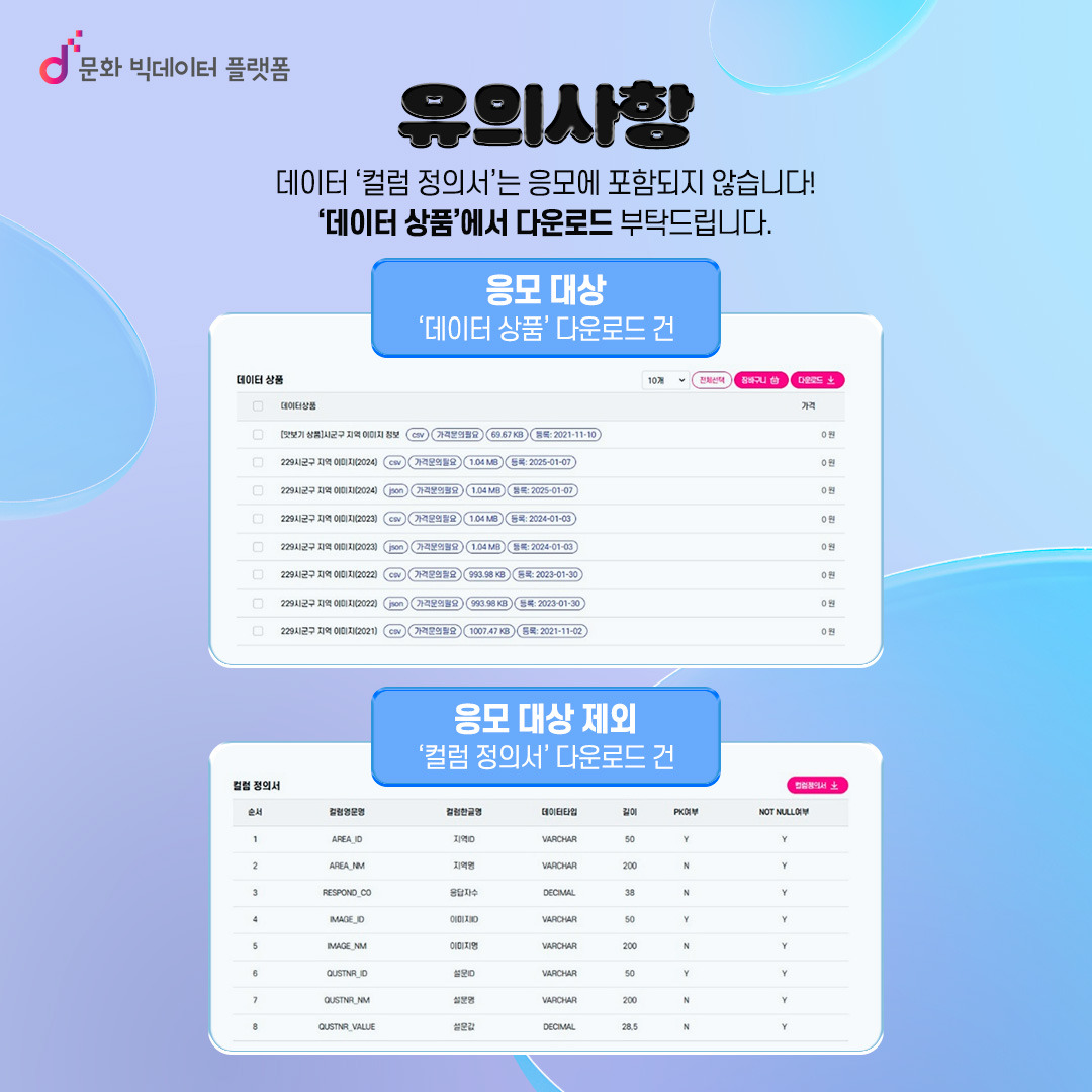 - 데이터 컬럼 정의서를 다운로드 받은 건은 응모에 포함되지 않습니다.