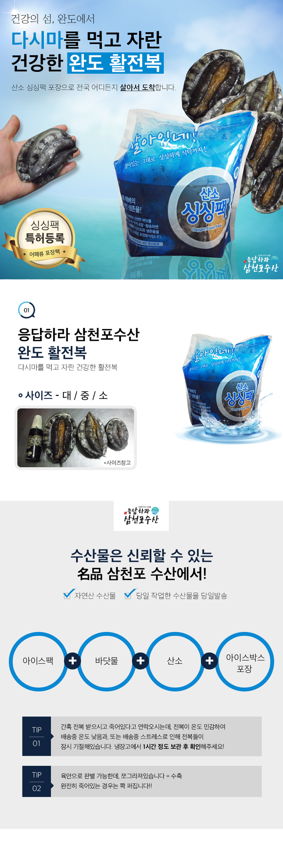 깨끗한 해수, 그리고 특허받은 싱싱팩으로 산소포장까지 함으로써