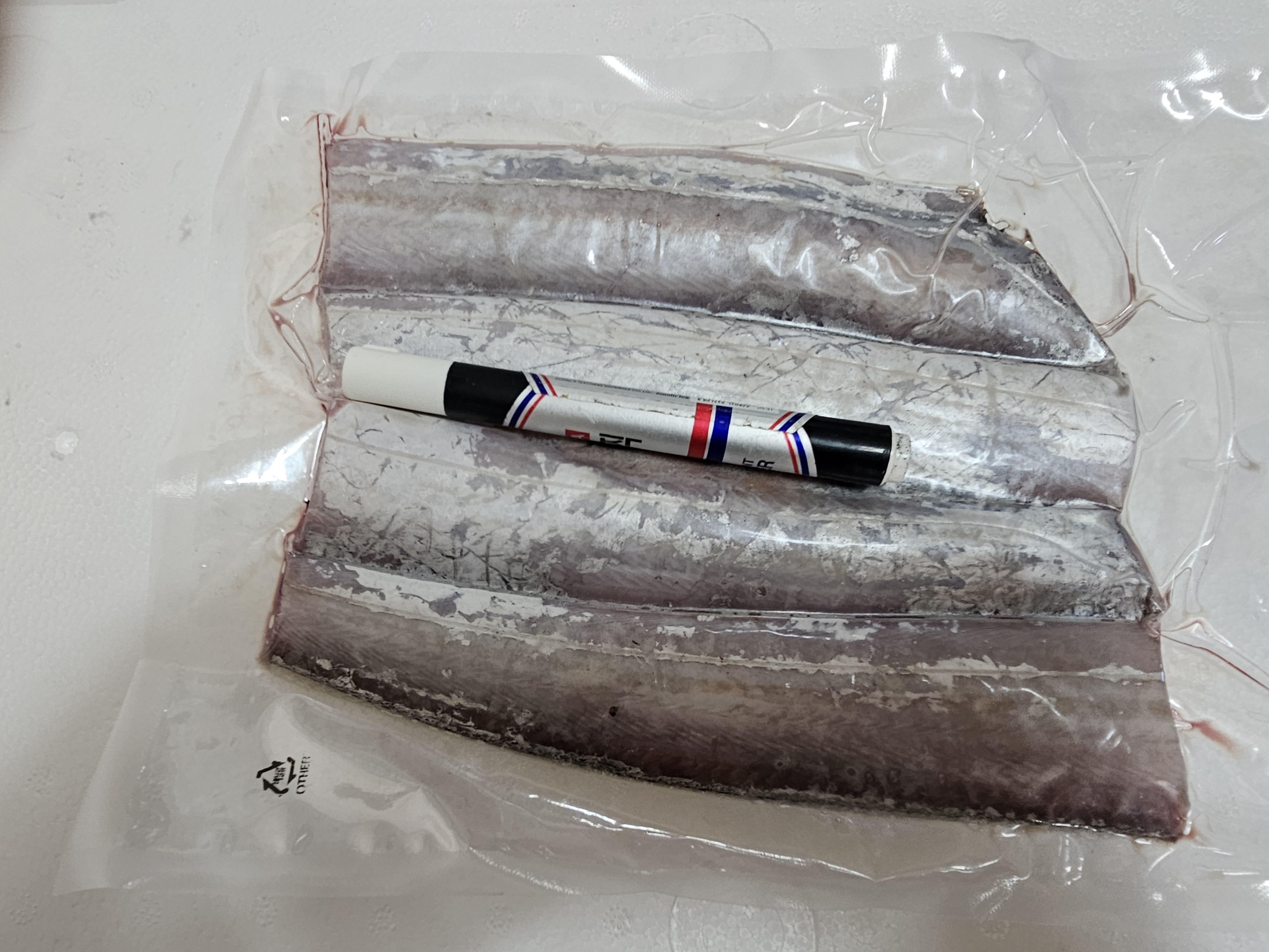 2마리 반토막후 진공해서 냉동해놨습니다(400그람전후)