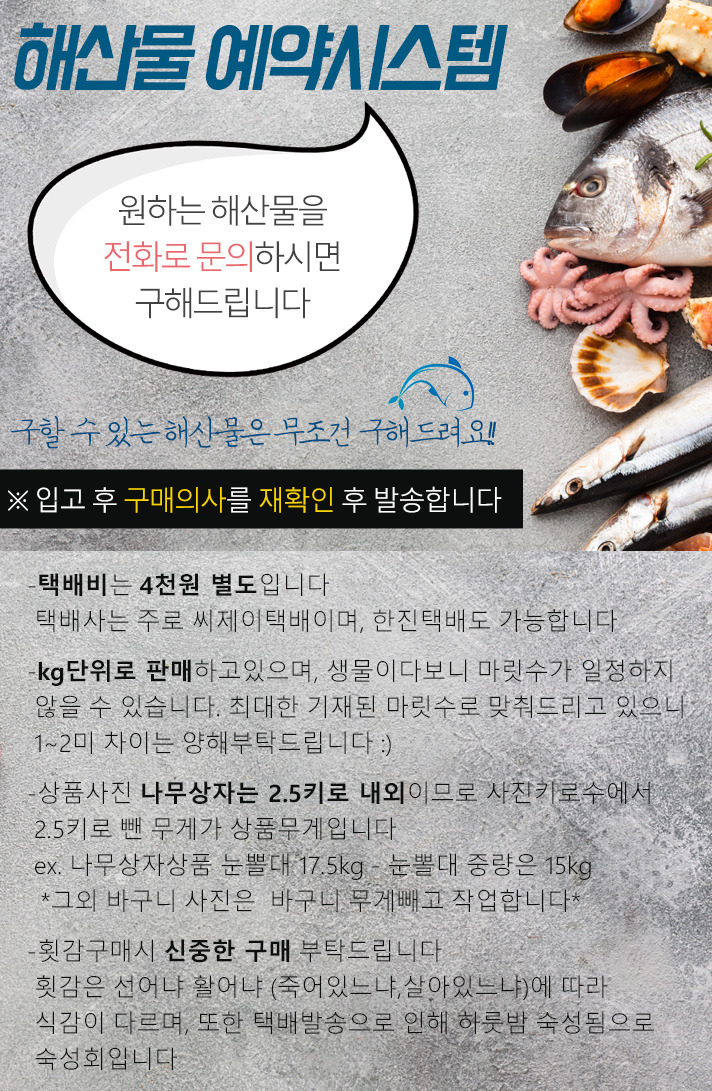 횟감손질 요청 1키로당 - 5,000원추가<서더리 필요시 말씀주세요>