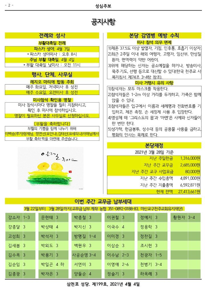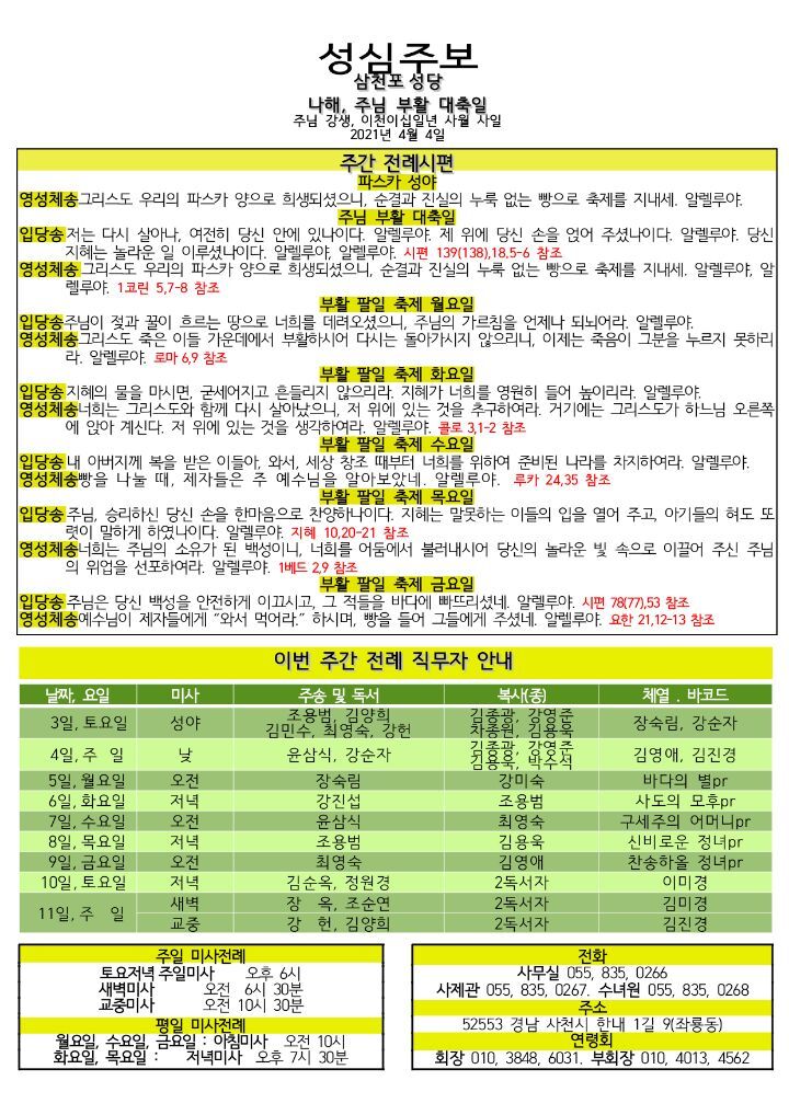 4월 4일 부활대축일 작성자김종광 미카엘|작성시간21.04.03|조회수66 목록 댓글 0 글자크기 작게가 글자크기 크게가 다음검색 현재 게시글 추가 기능 열기 북마크 신고 센터로 신고 댓글 댓글 0 댓글쓰기 답글쓰기 댓글 리스트