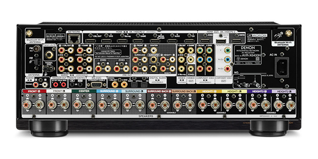 HDMI 이외의 단자는 AVR-X6400H 입력단자로 컴포지트×5, 컴포넌트×2, 아날로그 음성×8, 광 디지털×2, 동축 디지털×2. 출력단자는 컴포지트×2, 컴포넌트×1, 11.2채널 프리아웃×1, 존 프리아웃×2, 헤드폰 출력×1을 제공한다. 이외에 이더넷(Ethernet), Denon Link HD, USB, RS-232C, DC 트리거 단자를 갖췄다.