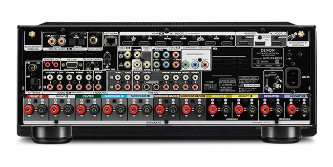 AVR-X4400은 입력으로 컴포지트×4, 컴포넌트×2, 아날로그 음성×7, 광 디지털×2, 동축 디지털×2. 출력단자는 컴포지트×2, 컴포넌트×1, 11.2채널 프리아웃×1, 존 프리아웃×2, 헤드폰 출력×1을 제공한다. 이외에 이더넷, Denon Link HD, USB, RS-232C, DC 트리거 단자를 제공한다.