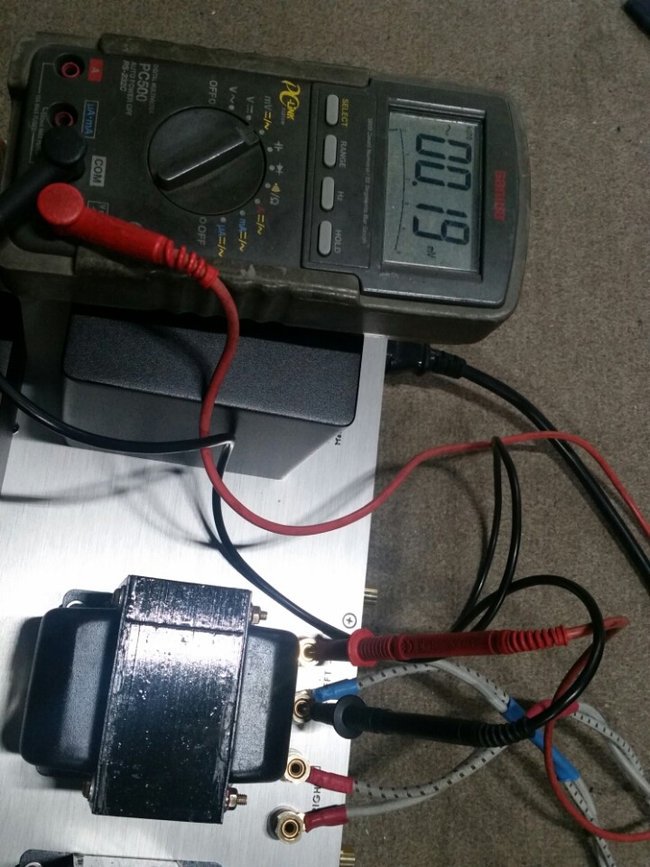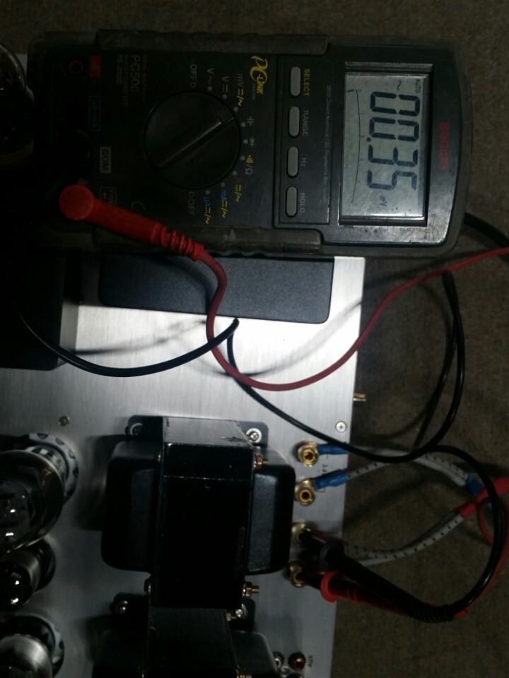 미리볼트 메타로 앰프의 잔류잡음을 측정한 사진 입니다. 0.35mV