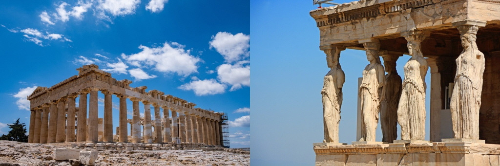 아테네의 수호 여신인 아테나에게 바친 신전으로 아크로폴리스에서 가장 아릅답고 웅장한 건축물로 평가되는 파르테논 신전과 6개의 여인상을 기둥으로 사용한