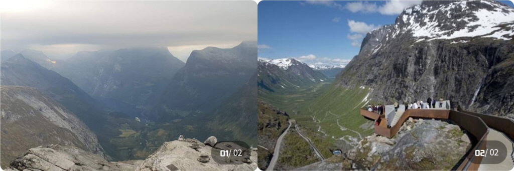 2005년 유네스코에서 세계자연유산으로 지정한 게이랑에르피오르(Geirangerfjord) 주변의 웅장한 경관을 전망할 수 있는 인기있는 관광 명소입니다.