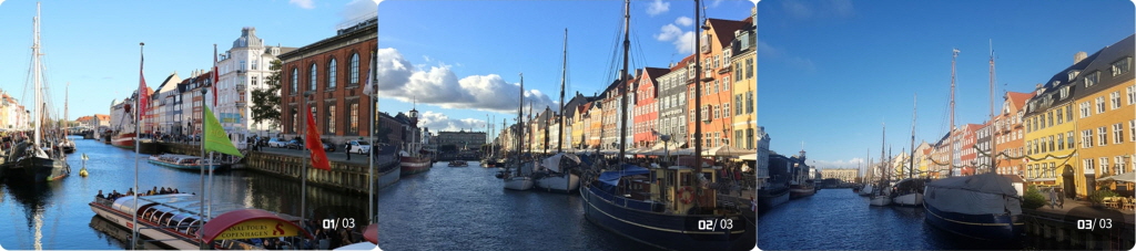 뉘하운 북쪽에는 나무, 벽돌, 석회로 만든 형형색색의 건축물들이 들어서 있다.