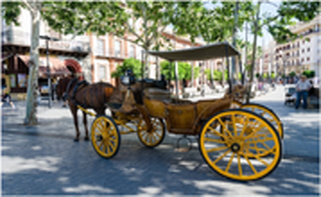 광장에는 말을 탄 카를로스 3세의 동상이 있다.