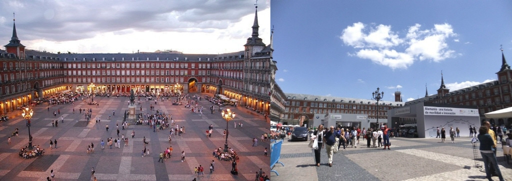 마요르 광장은 스페인의 전통적인 모습에 가장 가까운 곳으로, 가로 90미터, 세로 109미터의 광장을 직사각형 모양의 4층 건물들이 에워싸고 있으며, 그 중심에는