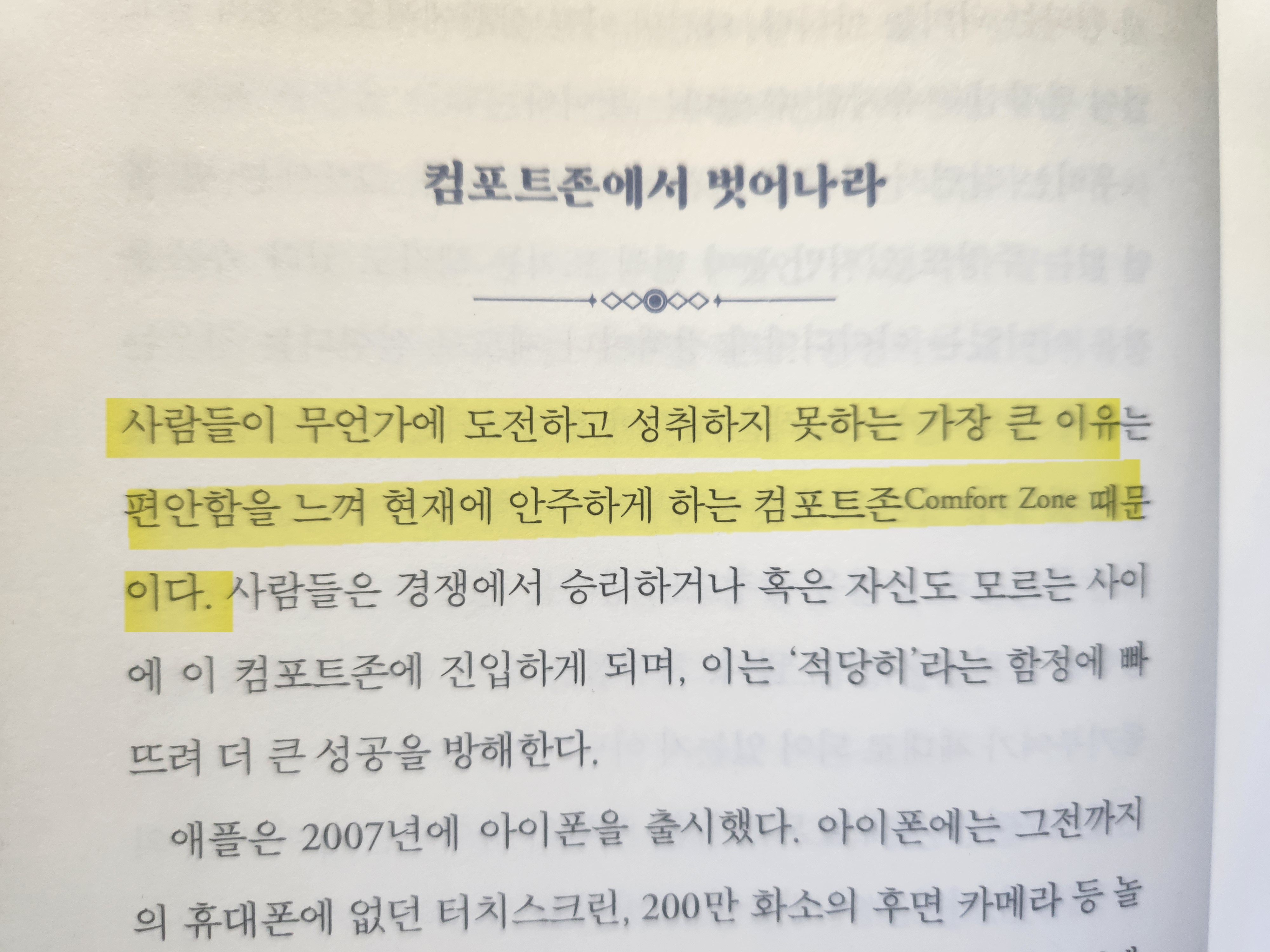 이제 시작했지만 1장에 '컴포트존' 이야기가 나왔습니다.
