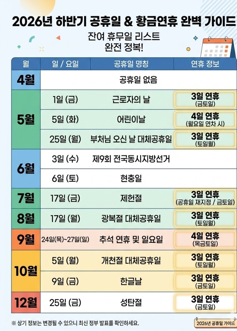 5월 1일부터 연휴 잘짜면 황금연휴 보내는 시간이 되겠다~~