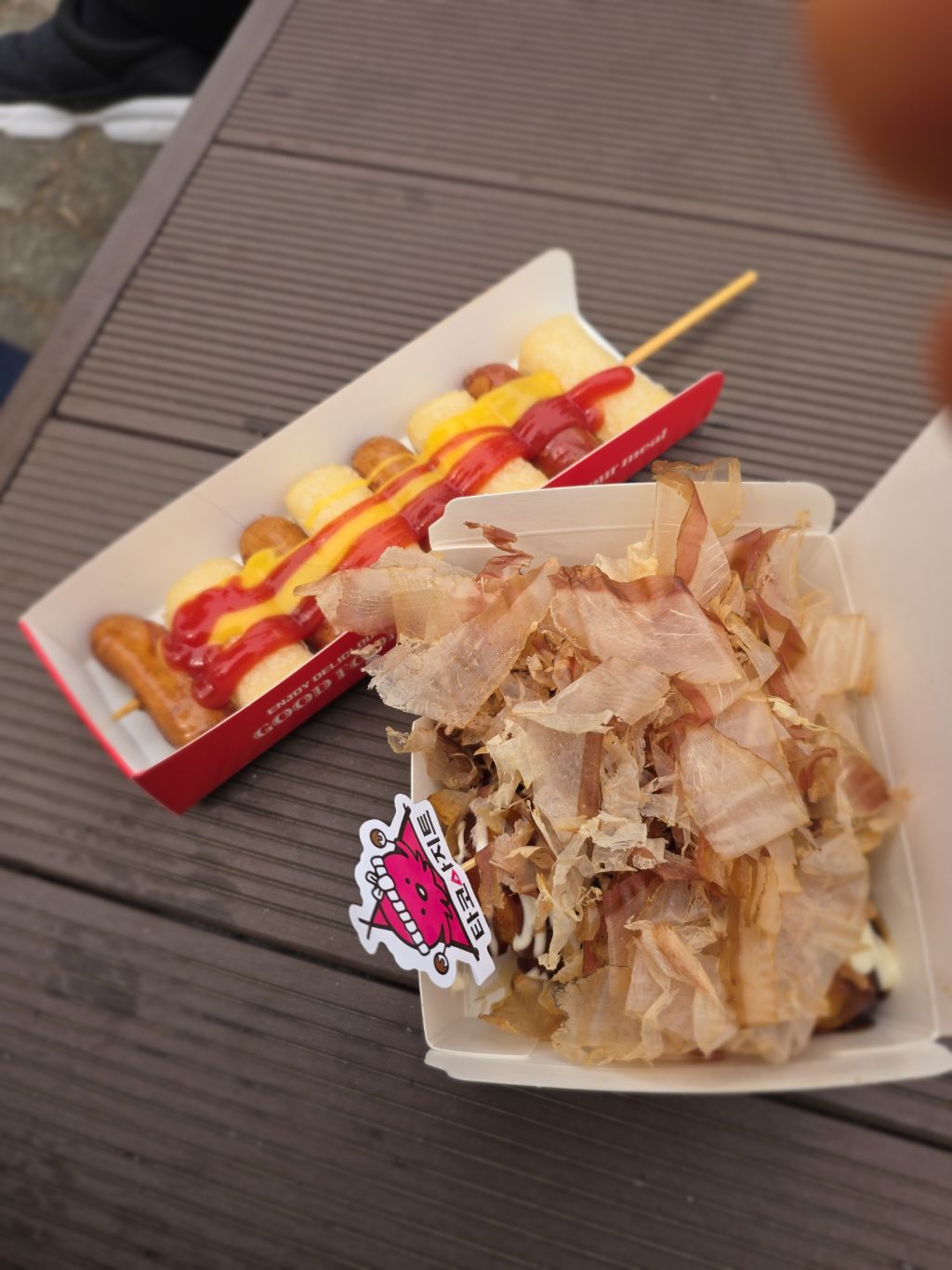 전 스테이크랑 다코야끼 소떡소떡을 먹었는데..