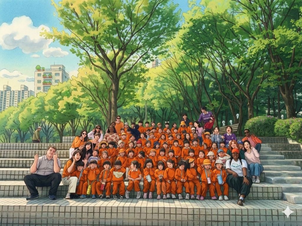 영어유치원 원아 반정도 공원으로 나들이 왔어요~^^