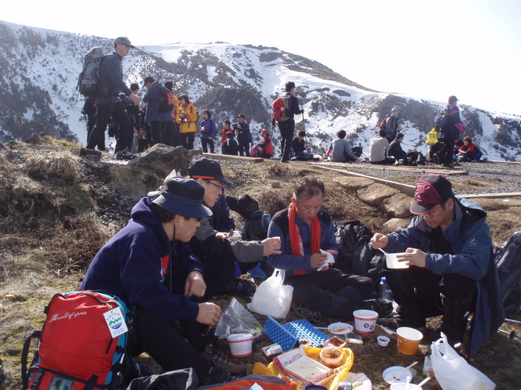 백록담의 감동이 잔잔해지자 이제야 배가 허기를 느낀다.