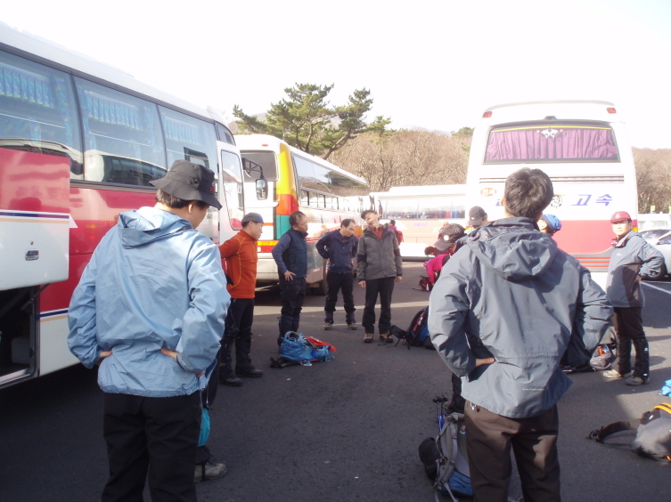 제주공항에서 성판악으로 가는 버스 안에서 1공대장과 4공대장의 전화를 받았다.