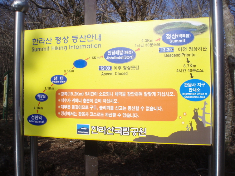 지정 시간 내 구간을 통과하지 않으면 더 이상의 산행은 제한되어 성판악으로 되돌아가야 한다.