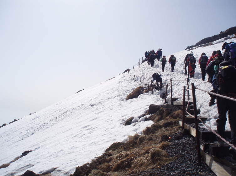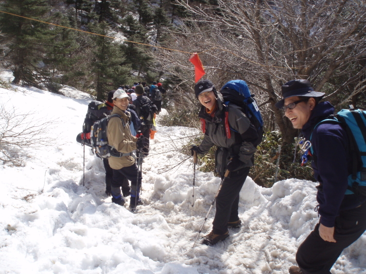 아이젠을 하여도 샤베트 같은 雪質과 마음약한 여성 산우들의 방황에 엄청난 병목현상이다.