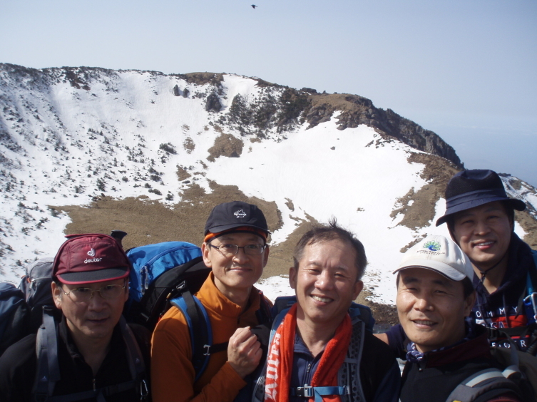 사진화보로 보아왔던 백록담을 직접 보는 산우들의 가슴 속에 강한 희열의 전율이 지나간다.