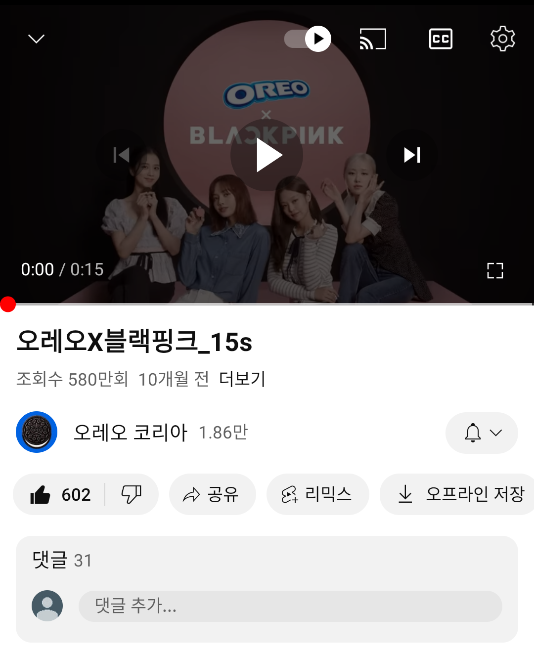 오레오 OREO 블랙 핑크 작성자허브처럼|작성시간23.12.25|조회수3 목록 댓글 0 글자크기 작게가 글자크기 크게가 오레오OREO블랙 핑크https://youtu.be/_R8n81sYnfA?si=DdPykW7hOg1s0d7mhttps://youtu.be/2V_GLwm0oK0?si=U9ec4bH5wHi7UCju 다음검색 현재 게시글 추가 기능 열기 북마크 공유하기 신고 센터로 신고 댓글 댓글 0 댓글쓰기 답글쓰기 댓글 리스트