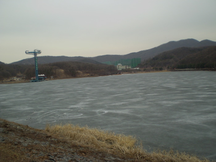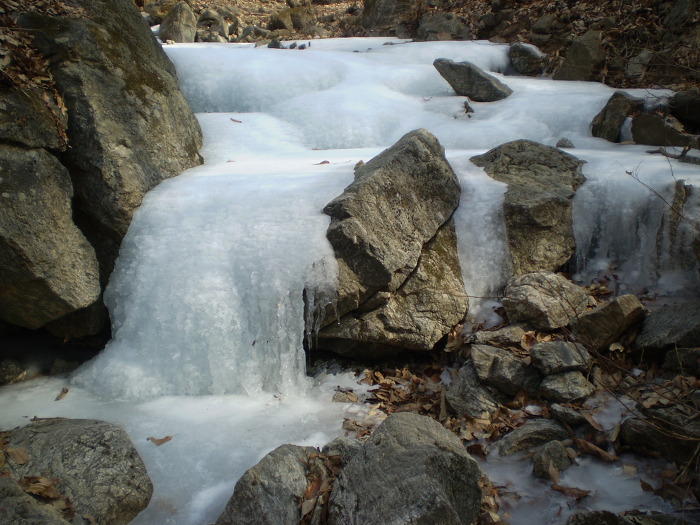봄날 같은 따뜻한 날씨였지만 계곡의 얼음은 아직 단단하다.