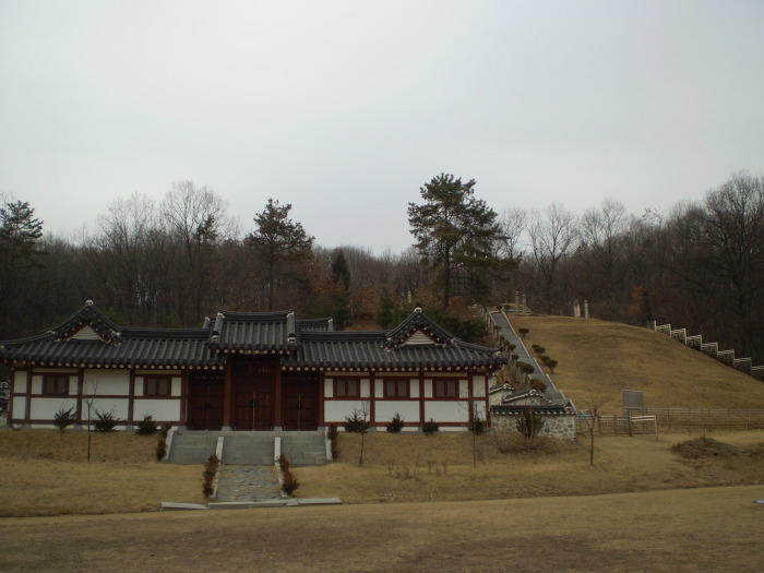 율동공원저수지 조각공원 윗쪽에 청주한씨 문정공파의 제실과 묘지가 깨끗하게 단장되어 있다.