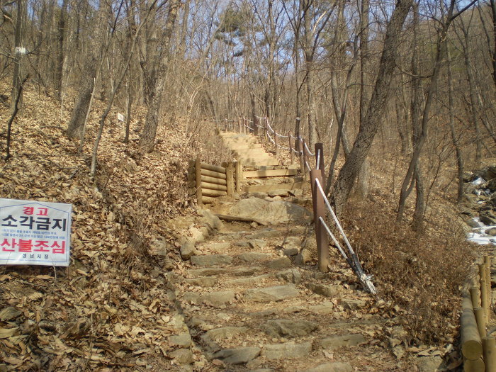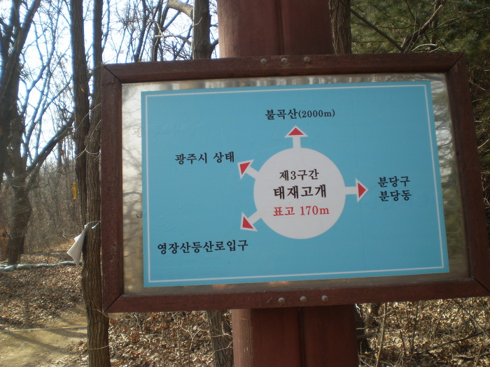 태재고개에서 시가지를 지나 영장산으로 오르는 등산로에 경기도 광주시의 봉적골 고개를 지났다.