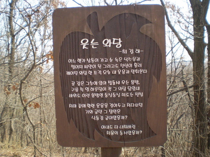 시가 적힌 이러한 표시판이 등산로 곳곳에 많았다.