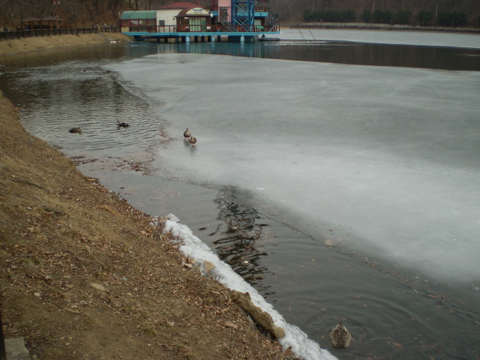 율동공원저수지는 거의 다 얼음으로 덮여 있었으나 한켠 얼음이 녹은 곳에 오리들이 많이 있었다.