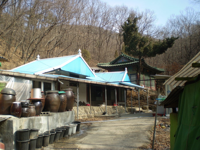 대웅전 건물 하나 있는 골안사라는 작은절과 그 부속 건물들.